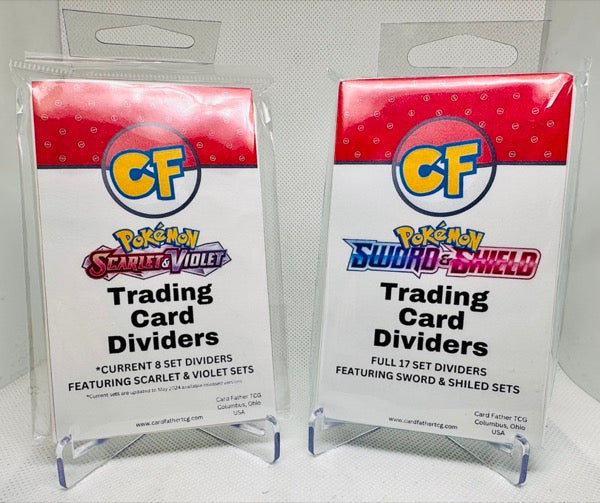 These Pokemon set themed dividers offer you the connivence of being able to easily separate your cards in any Elite Trainer Box, Shoe Box, or card box easily. Designed with water resistant vinyl logos of each set in a specific era, each card is taller than a standard Pokemon card. Conveniently rising above to help divide and quickly identify which set you're working in. Dividers are made of a hard, but flexible plastic that will not damage or cause any distress to your cards.